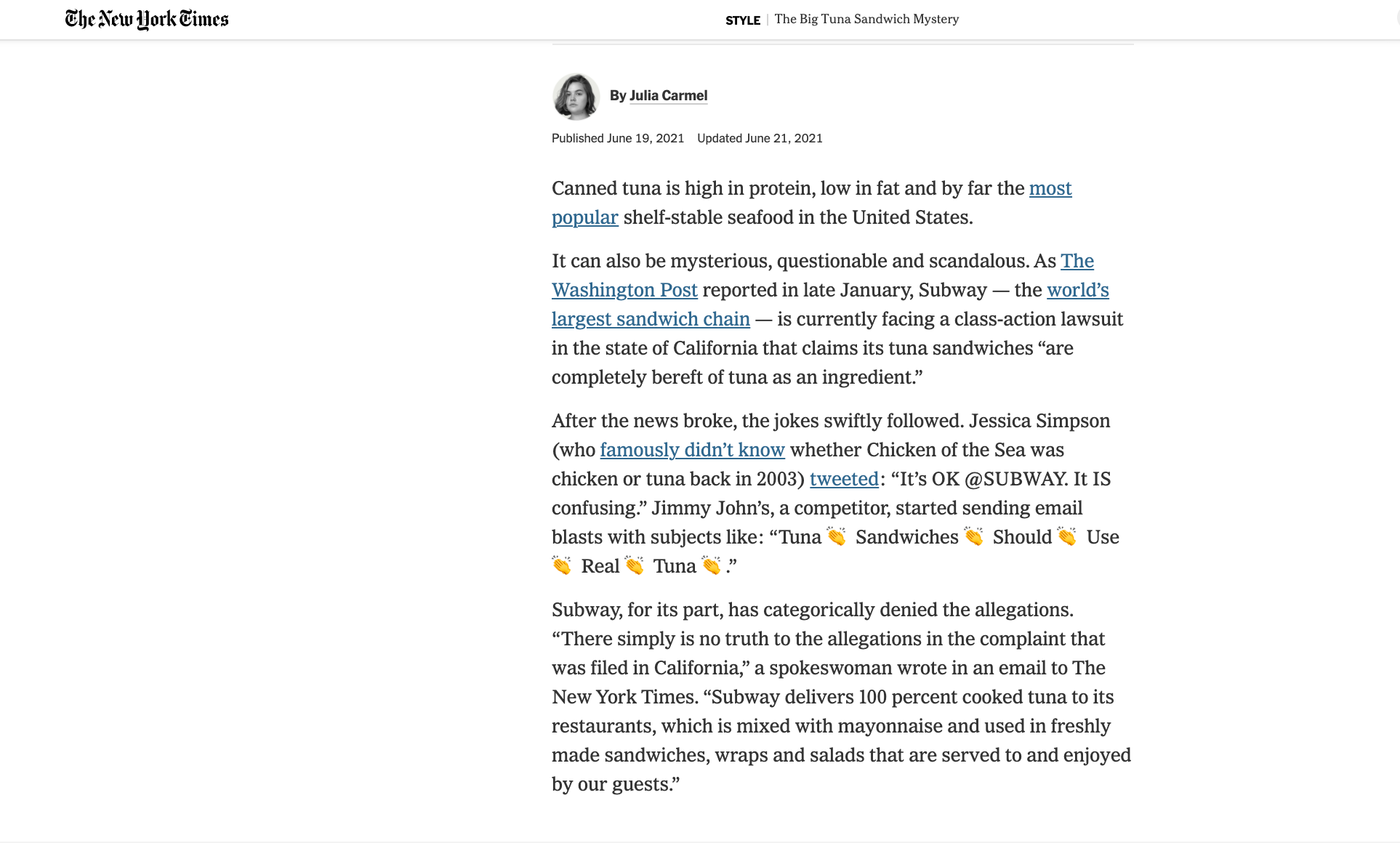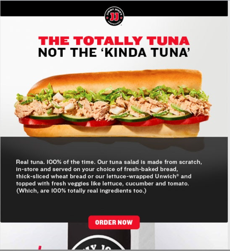 Our friends at Jimmy John’s caught wind of something fishy—well, fake fishy. Turns out Subway’s tuna isn’t real tuna. Go figure. They decided it was the perfect time to highlight that Jimmy John’s tuna, in fact, is real.